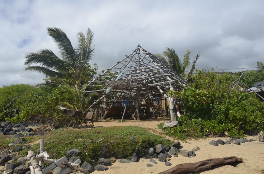 Hale at fishpond Published January 29, 2015 at 4928 × 3264 in A Return to Molokai’s Fishponds, a 2,000 Foot Vista, and a Phallic Rock The hale (traditional Hawaiian house) Leimana built at the fishpond. He has plans to thatch it.
