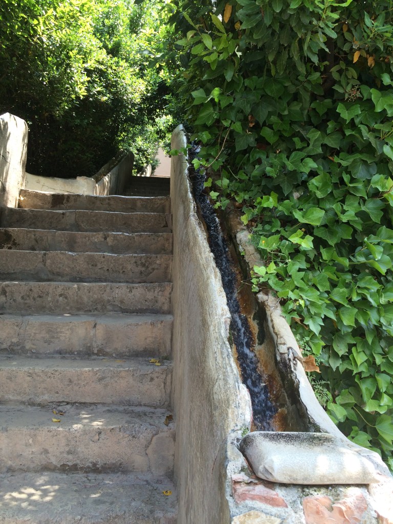 2015-06-11 14.01.39 Published June 12, 2015 at 2448 × 3264 in Stairs, Stairs, Stairs, and–Oh My God!–More Stairs A long, steep staircase in the Generalife gardens. Water runs down channels carved into the balustrades on both sides of the staircase.