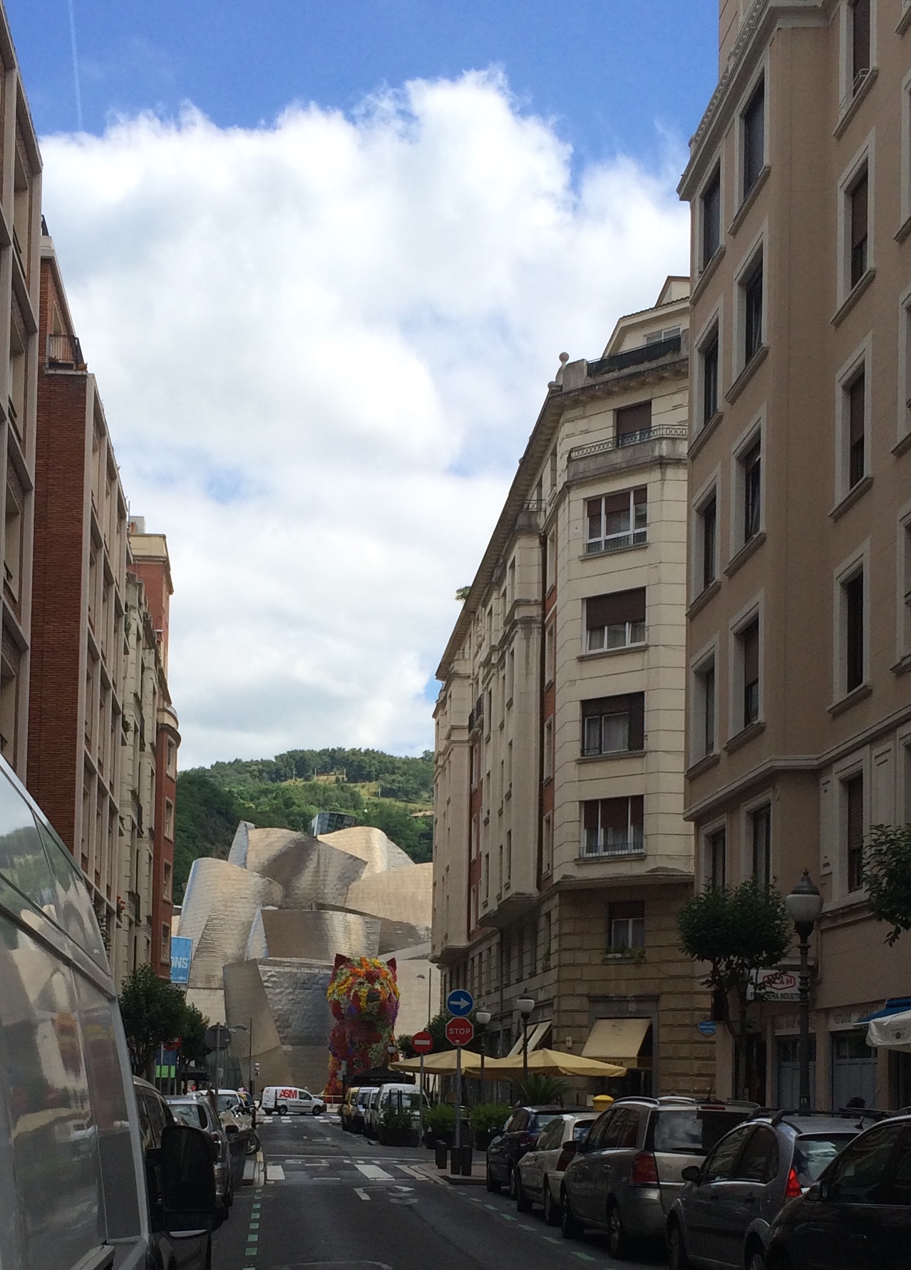 View of Guggenheim Published June 25, 2015 at 1278 × 1782 in Goggling the Guggenheim and Getting Crunched This view of the Guggenheim from the street shows how huge “Puppy” is