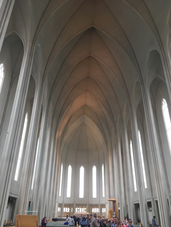 We visited the Reykjavík Cathedral, which is a Church of Iceland (Lutheran) edifice. It’s quite unique, but I have mixed feelings about it. It is a towering icon, dwarfing other buildings in a city that has very few tall buildings, and no skyscrapers. Its architecture combines the Gothic with… I dunno. The interior is the most austere and severe I have ever see.