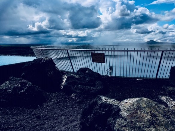 Today we visited Lake Myvatn (pronounced MEE-vah) to see the many attractions of that area. To get there, you have to register online to get a pass to go through the Vadisheidargong (I don’t even have the letters in my font set to write this properly) Tunnel, seven and a quarter kilometers long, cut through volcanic rock. It’s not the longest tunnel in the world, but I think it may be the longest tunnel I have ever traversed.