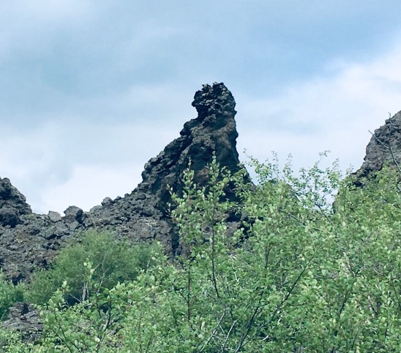 This is actually at Dummborgír. I forgot to post it. Many, many stones in Iceland are supposed to be trolls that got caught by the morning light and turned to stone. This one looks like a troll roaring. I have no idea if it is a locally-sanctioned troll stone or not.