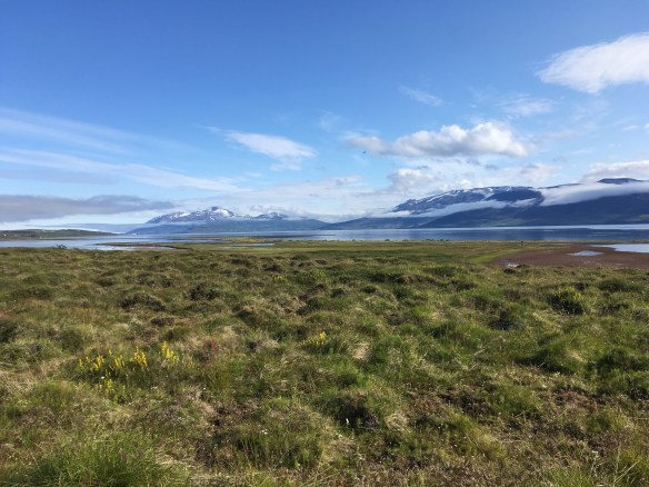 Then there are the fjords, glittering in the sun or soft and sullen beneath the clouds. The lava mountains on the other side of every single fjord often have a necktie of white cloud resting midway between the ground and the peaks.