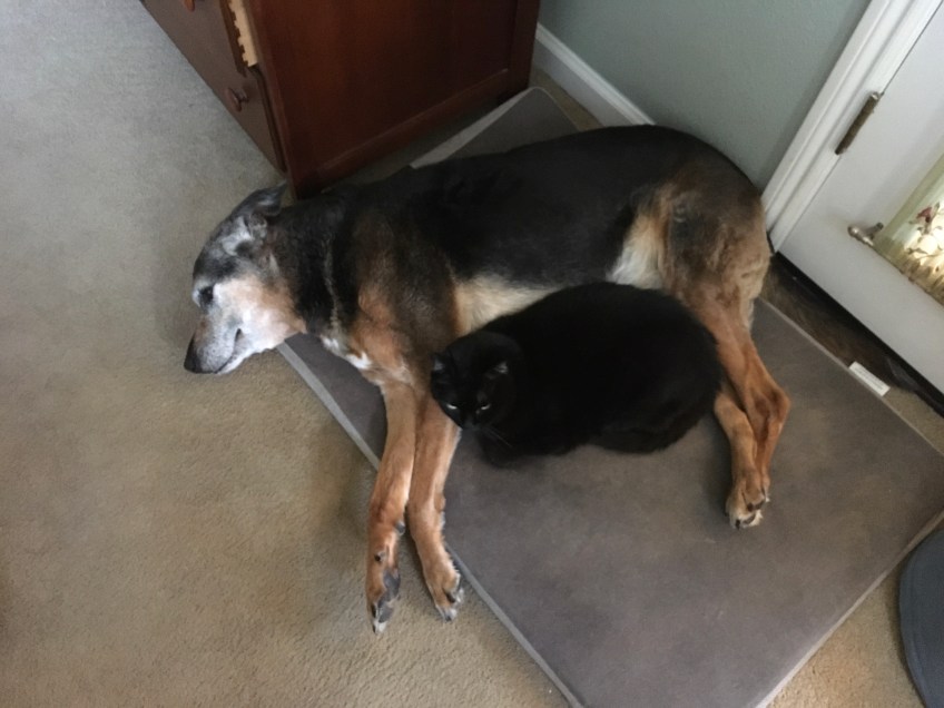 684CBEE9-9B5A-4AE8-8C0B-B56A25C9069E_1_201_a Published November 26, 2019 at 4032 × 3024 in Let Me Tell You About Gigi (written three years ago in preparation for this day) Inca cuddled up with Gigi today, knowing her friend wasn’t feeling well.