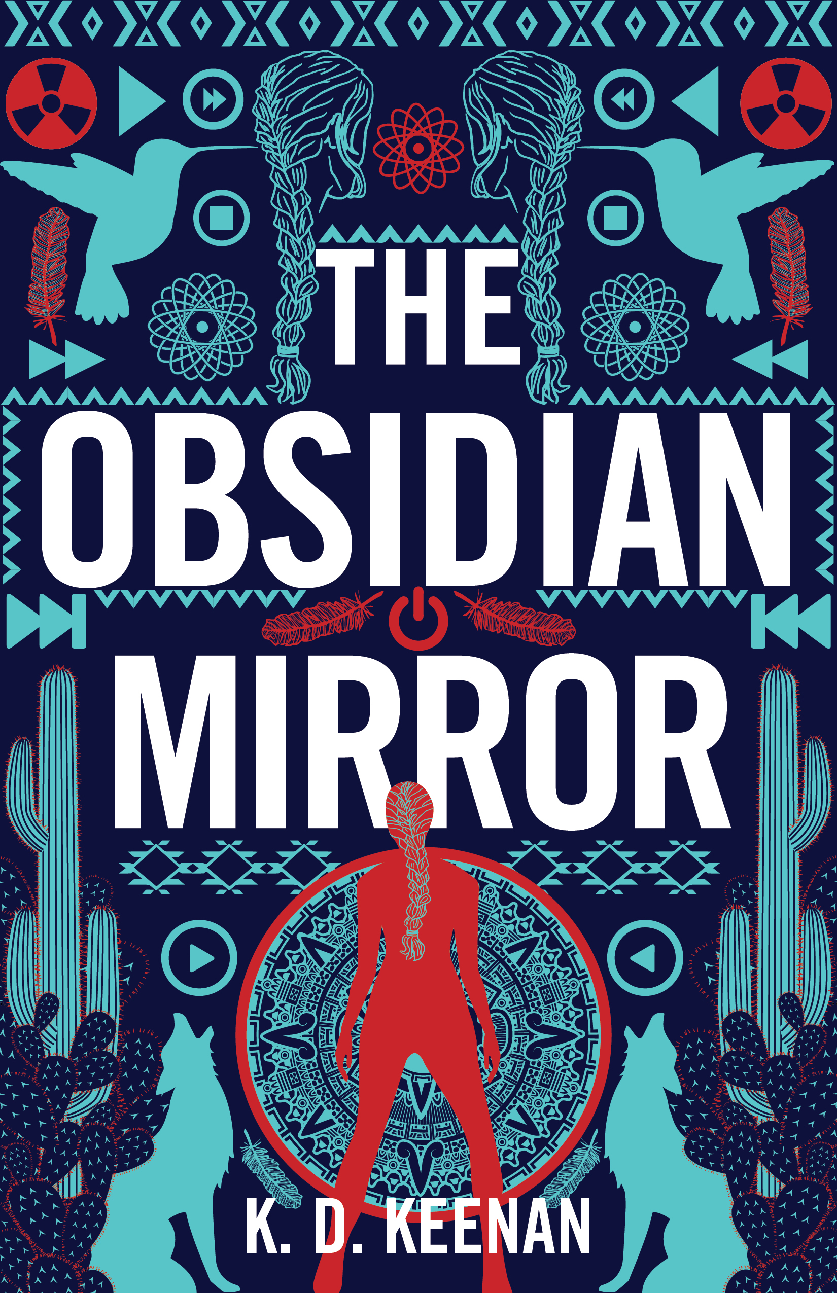 I’m thrilled by the new look for “The Obsidian Mirror,” as it is a real departure from the other two covers it has had the honor to wear. Many elements from the book are woven into the graphics: Sierra and her long braid, the Aztec Calendar, coyotes, cacti, Native American themes and high-tech symbols. I love the bold colors.