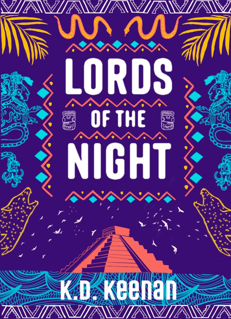 In particular, I am pleased that everything fits the ancient Mayan theme of the book–ocean, snakes, temple, palm fronds, Spirit Snake amulet, coyote (Chaco!). The birds flying around the temple refer to a climactic scene in the book (although it’s not the only climax, I assure you).