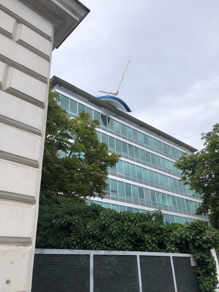 We docked at Vienna, so the view from our stateroom changed. We were facing across the river from the old city, which meant a view of very modern buildings, including a tall skyscraper with a weird wavy design, and a spire that looked like it might be a control tower.